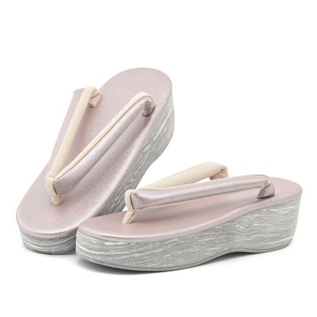 艶感のあるラメ入りの天・鼻緒と上品な艶消しの天・鼻緒で、台は落ち着いた木目調です。