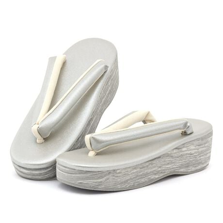 艶感のあるラメ入りの天・鼻緒と上品な艶消しの天・鼻緒で、台は落ち着いた木目調です。