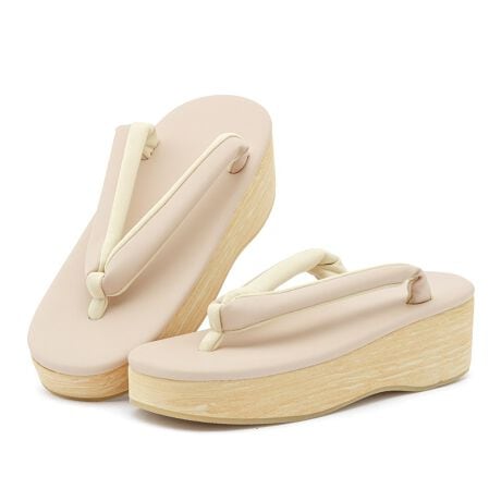 艶感のあるラメ入りの天・鼻緒と上品な艶消しの天・鼻緒で、台は落ち着いた木目調です。