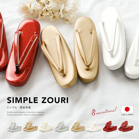 天と鼻緒、前坪が共布やエナメル加工の素材となります。台は、程よい高さの三枚芯です。
