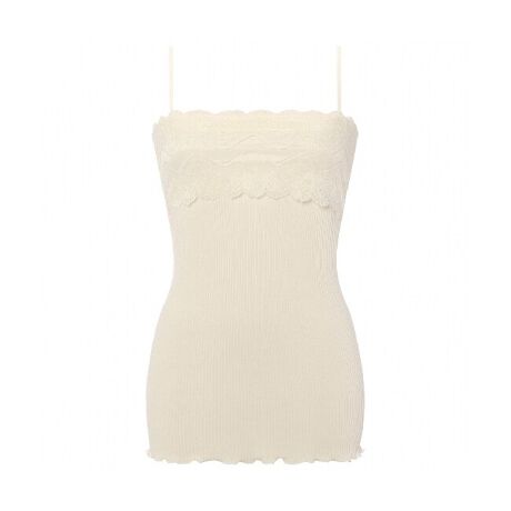 細めのリブと編みレースをふんだんに使用したレーシーなデザインでアウターの下までぬかりなく。シアー素材や、肩の出るトップスなど、あえてアウターからレースを覗かせるコーディネートもおすすめ。大活躍の1着です。