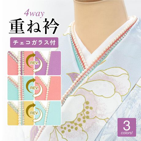 鮮やかな色の重ね衿は、着物姿をよりいっそう豪華な雰囲気に仕上げます。