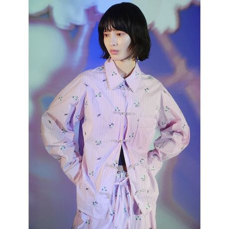 KEITA MARUYAMAアーカイブプリントの中から桜モチーフを抽出し、桜が舞い散るようにシャツ全体へ贅沢に刺繍を施した存在感抜群の1枚。ゆったりとしたオーバーサイズシルエットがリラックス感を演出しつつ、フロントのチャイナボタンと配色パイピングがエッジを効かせています。胸元にはさりげなくロゴ刺繍をあしらい、スリーピングシャツのような柔らかなムードに。単品ではもちろん、同シリーズのパンツとセットアップで着用すればさらに華やかでモードな印象に仕上がります。
