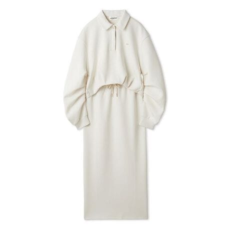 人気のボンディングシリーズから、動きやすさと美シルエットを両立したセパレート仕様のワンピースが登場。今季はトップスの袖と裾にタックデザインを施し、立体感をプラスするとともに、安心感のある丈感へとアップデートしました。スカートはやや細身のペンシルシルエットで縦のラインを強調し、ゆるっとしたトップスとのバランスが絶妙。セットアップとしてはもちろん、それぞれ単品使いでも着回し力の高いアイテムです。