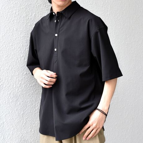 ビジネスシーンにはもちろん、パンツ次第でカジュアルスタイルにも合わせていただけるプルオーバーシャツ。
