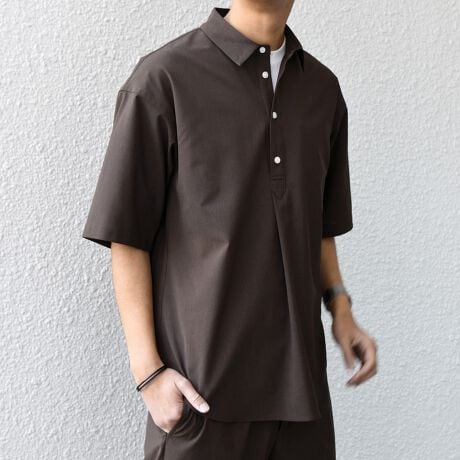 ビジネスシーンにはもちろん、パンツ次第でカジュアルスタイルにも合わせていただけるプルオーバーシャツ。