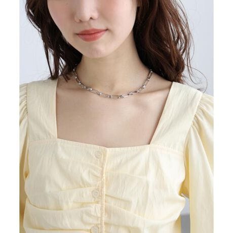 [型番:1316190001]程よいボリュームのチェーンが首元を華やかに演出するネックレス。幅広いネックラインに合わせやすい長さで、シンプルながら様々なコーディネートに取り入れやすいアクセサリーです。※モデルの着用画像の場合、光の当たり具合により、実際の色味と異なって見えることがございます。色味は、商品単体の画像をご参照ください。