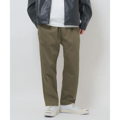 高い伸縮性を誇るハイストレッチ素材を使用したリラックスパンツ。膝の曲げ伸ばしや立ち座りもスムーズで、長時間の着用でもストレスを感じにくい快適な穿き心地が魅力です。腰まわりに程よくゆとりを持たせながら、全体はすっきりとしたシルエットに仕上げることで、ラフになりすぎない印象に。ウエストはゴム仕様で穿き心地はラク、それでいて見た目はきれいめにまとまるバランスの取れた一本。オンオフ問わず活躍する、デイリーに頼れるパンツです。