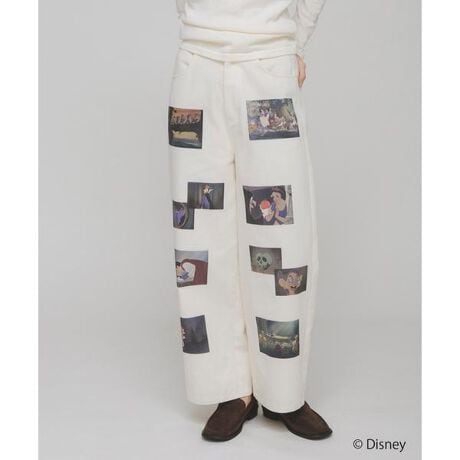 KBFよりディズニーコレクションが発売されました。ディズニー『白雪姫』の名シーンをランダムに散りばめプリントした主役級パンツ。OFFはヴィンテージ感のあるカラー仕様、 CHARCOALはモノトーンで纏めました。ウエストは後ろゴム仕様になっており、紐も通しているので調整して穿いていただけます。ベーシックトップスに映えるおすすめな1着です。