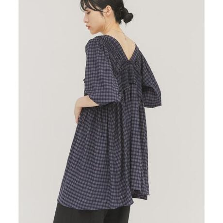 衿と胸下のシャーリングデザインがポイントになった、チェック柄を採用したミニワンピース。少しゆるめのシャーリングになっているので、締め付け感なく着ていただけます。表情が異なる前後2WAY仕様も嬉しい。ミニワンピースですが、デニムやロングパンツを合わせたレイヤードスタイルもおすすめです。