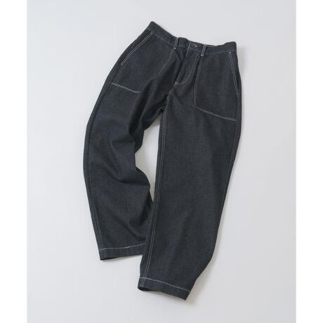 フロントの大きなパッチポケットが印象的なデニムベイカーパンツ。ワーク由来のディテールを活かしながら、配色ステッチでクリーンな印象に仕上げています。ゆとりのあるワイドストレートシルエットは、リラックス感がありながらも野暮ったくならない絶妙なバランス。しっかりとした肉感のデニムは穿き込むほどに風合いが増し、経年変化も楽しめます。どんなトップスも幅広く合わせやすく、シーズンレスで活躍する一本です。
