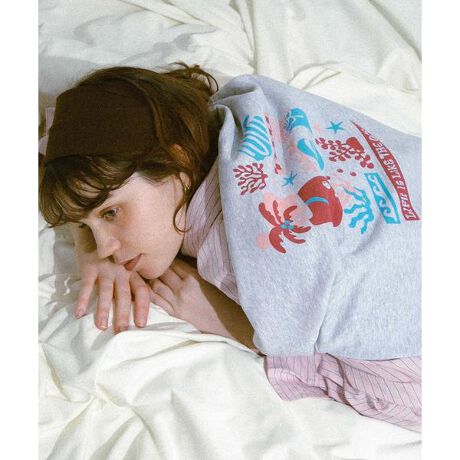 サニーレーベルの今期コンセプト『ビーチピクニック』をイメージソースに、海やビーチの風景をモチーフにしたイラストが印象的なスウェットトップス。