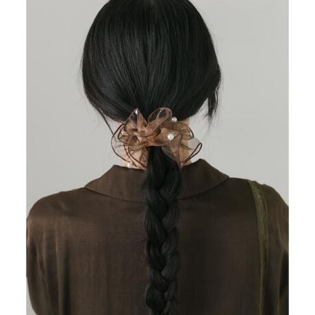 ふんわりとした透け感素材が女性らしい柔らかさを演出するヘアーカフ。