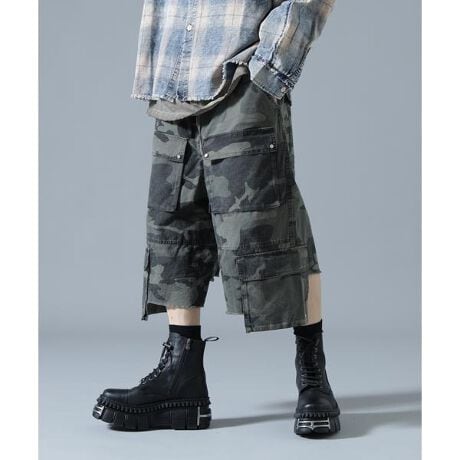 ミリタリーディテールを再構築した存在感抜群のワイドカーゴショーツ。