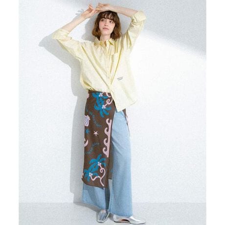 大判サイズなので、首元に巻くのはもちろん肩掛けや腰巻き、ビスチェ風アレンジなどスタイリングの巾も自在です。