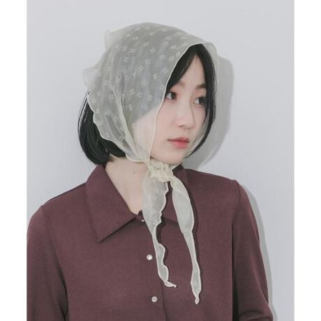 いつものスタイリングに、透け感と甘さをひとさじ加えるスカーフです。