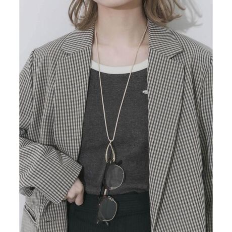●しずく型のメタルパーツをトップにあしらったロングネックレスのようなデザイン