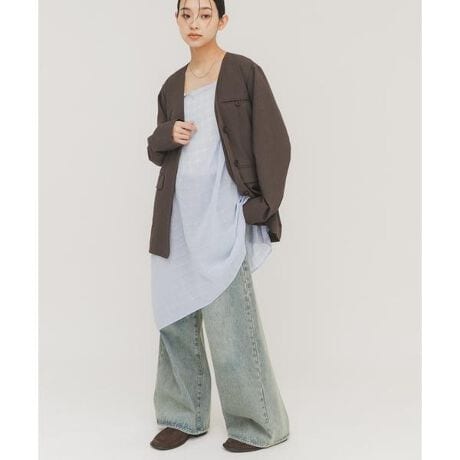 四角の布になったマルチWAYの着こなしが叶う変化球トップスが登場。シャツジャケットの上から巻いたり、結ぶ位置によってドレープの出方が異なります。いつものスタイリングのプラスワンアイテムとしてぴったりです。