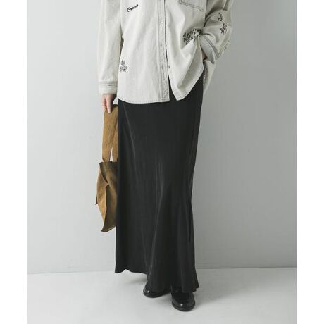 バイアスカットを施すことで、立体的で美しいフレアシルエットを実現しました。フレアの分量をあえて控えめに調整しているため、身体のラインを拾いすぎず、すっきりと着こなせるのが魅力です。