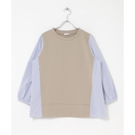 身頃は着心地の良いカットソー素材、袖や後ろ身頃には清涼感のある布帛素材を組み合わせた切り替えプルオーバー。ベストを重ねたようなデザインで、テクニックいらずでこなれた印象が完成します。袖口のギャザーがふんわりとしたボリュームを生み、後ろは分量感のあるシルエットで腰まわりをさりげなくカバー。動くたびに軽やかに揺れる表情も魅力です。きちんと感がありながらもストレスフリーな着心地で、オンオフ問わず活躍するロングセラーアイテムです。