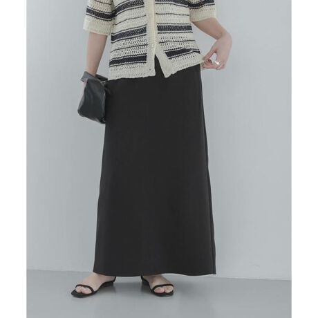 カジュアルでも綺麗めでも合わせやすい光沢を抑えた程よい張り感と、ナチュラルな伸縮性があり履き心地抜群のIラインスカート。