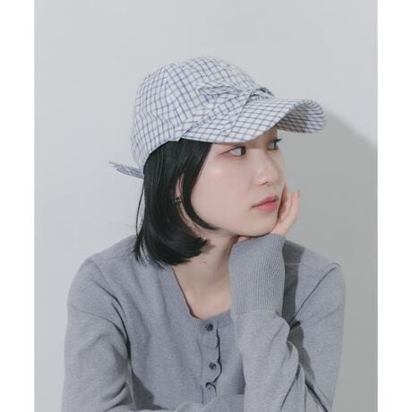 フロント部分に結ばれたリボンのディテールとチェック柄が顔周りを華やかに見せてくれます。