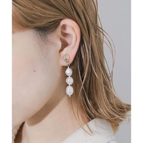 動くたびに軽やかに揺れる3連パールは存在感抜群で、コーディネートのアクセントとして大活躍間違いなしのアイテムです。