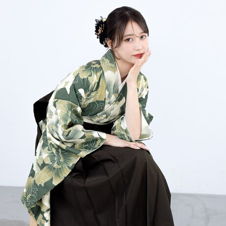 きもの館SOUBIENのプライベートブランド『floro by SOUBIEN』(フローロ)の二尺袖着物を合わせた華やかな袴セットです。