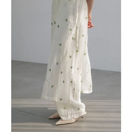 透け感とシワ感のある素材に小花柄の刺繍を施し、