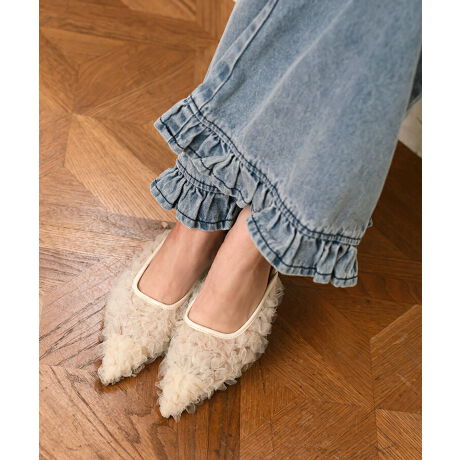 フリルチュールが華やかなミュール。