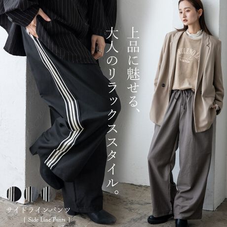 サイドに施されたラインテープが、スポーティでありながら洗練されたモード感を演出します。