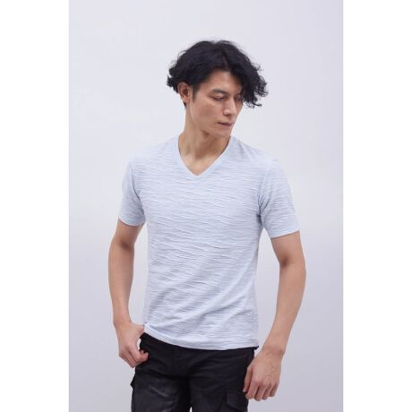 日本の技術が息づく、ボーダータックジャカードの涼やかでスタイリッシュなVネック半袖カットソー。