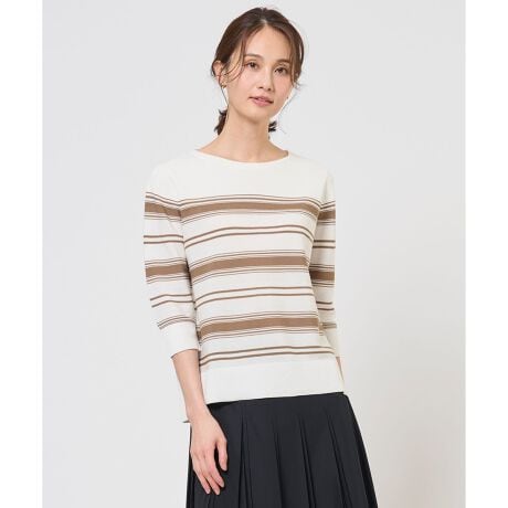 春の始まりに心地よい爽やかな着心地が魅力!ガーター編みボーダーニット