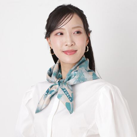 シックながらも美しい花柄が大人の華やかさを添え、首元やバッグに巻くだけでコーデにアクセントを利かせます。