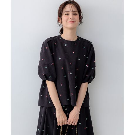 【スタッフコメント】▼身長158cm|着用サイズM (通常着用サイズM)凹凸のある素材感と小花刺繍柄が大人の遊び心をくすぐるデザインブラウスです。サッカー素材なので夏の暑い時期にも心地よく着用いただけるのもおすすめポイントです!