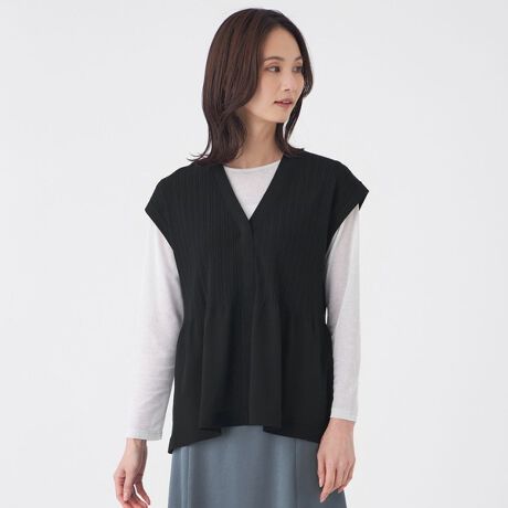 立体的なペプラムシルエットのニットジレです。