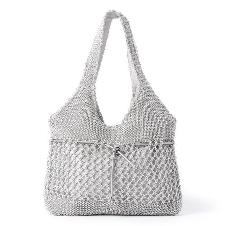 [型番:U1105731__]メタリックコードを使用した、機械編みのトートバッグです。無地のルックスでポイントがほしい時に役に立つメタリックカラーバッグ。サイズも、普段持ち歩いているもの、財布、メイクポーチ、眼鏡ケース、スマートフォンなどが入るサイズです。