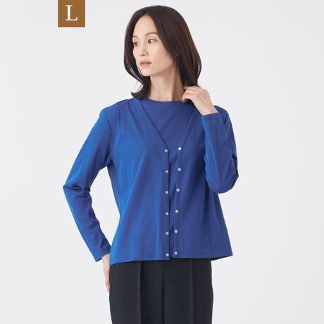 【L】【接触冷感・ウォッシャブル】コットンフライスカーディガン