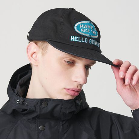 旅をコンセプトに掲げる<HELLO SUNRISE>らしい、「HAVE A NICE TRIP」のロゴをフロントにあしらった6パネルキャップ。
