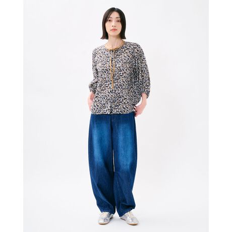 軽やかで適度なハリ感のある7オンスのコットンリネンデニムを使用し、膝と裾にダーツを入れた立体的なバレルシルエットが、脚のラインを美しく見せつつリラックス感を演出します。大人のカジュアルコーディネートにぴったりの一本です。