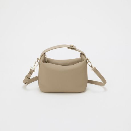 コロンとしたフォルムが可愛らしいコンビレザーのミニバッグ。