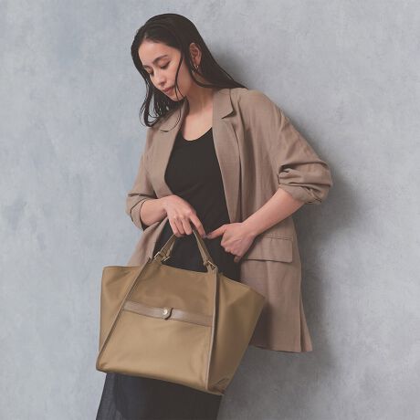 コートの上からでもラクに肩がけできるロングハンドルと、さっと手持ちできるショートハンドルが付き、お好みの持ち方を楽しめます。