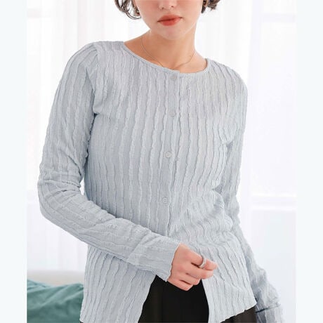 ・多彩なスタイルを演出する万能カットカーディガン・ジャストフィットなサイズ感なので1枚着でもレイヤードでも◎・凹凸のある表情感と透け感が特徴的なレース素材・ストライプ見えするポコポコ素材・選べるアソート素材で2色買いマストなアイテム[型番:AHXN2361]
