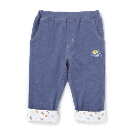 裾を折り返すと総柄が見える、遊び心あふれる男の子用7分丈パンツ。