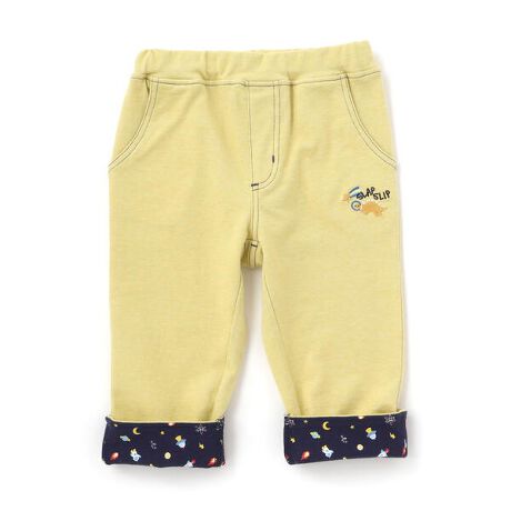 裾を折り返すと総柄が見える、遊び心あふれる男の子用7分丈パンツ。
