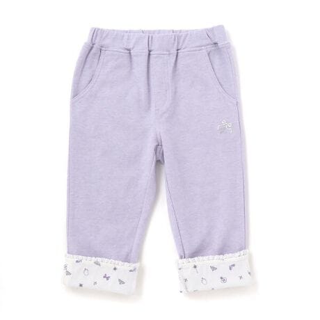 裾を折り返すと総柄がのぞく、可愛らしさが魅力の女の子用7分丈パンツ。
