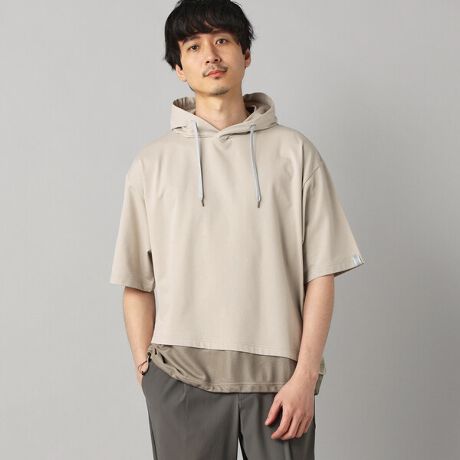 半袖×フードのデザインが程よくカジュアルで、季節の変わり目にも活躍する一枚です。