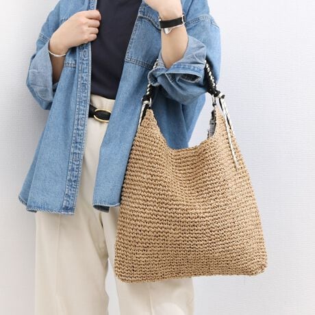 軽量で持ちやすく、シンプルながらもおしゃれなディテールが日常のコーディネートにさりげない存在感をプラスしてくれるカゴバッグです。