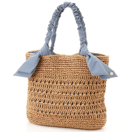 カシュカシュ cache cache / 下がりリボン柄編みトート カゴバッグ