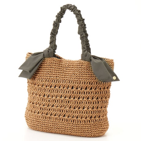 カシュカシュ cache cache / 下がりリボン柄編みトート カゴバッグ